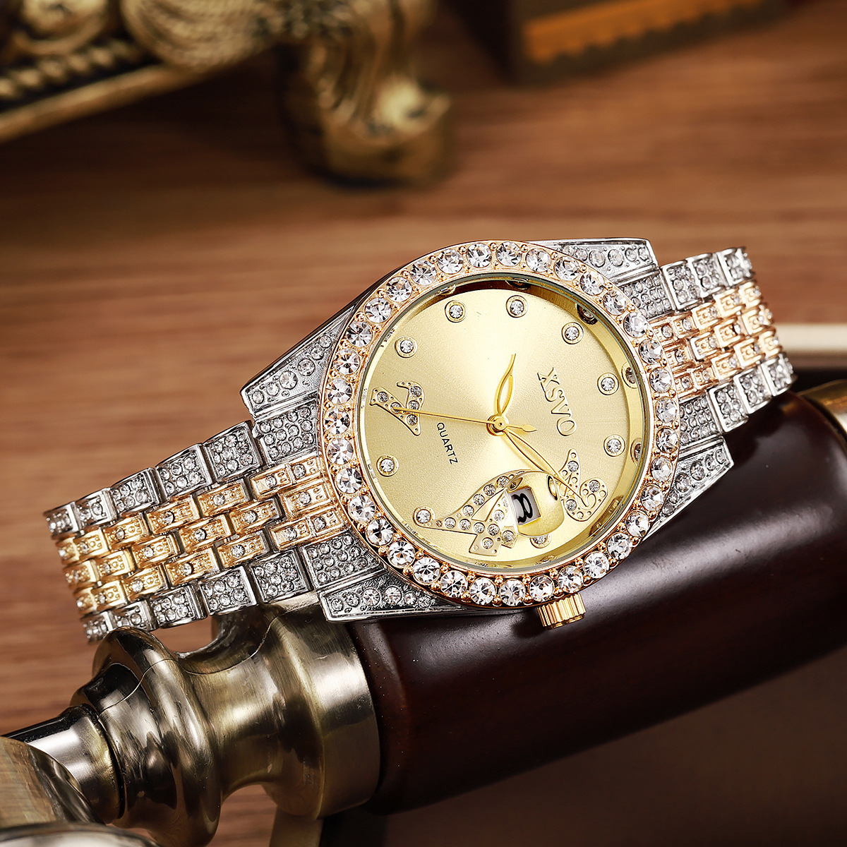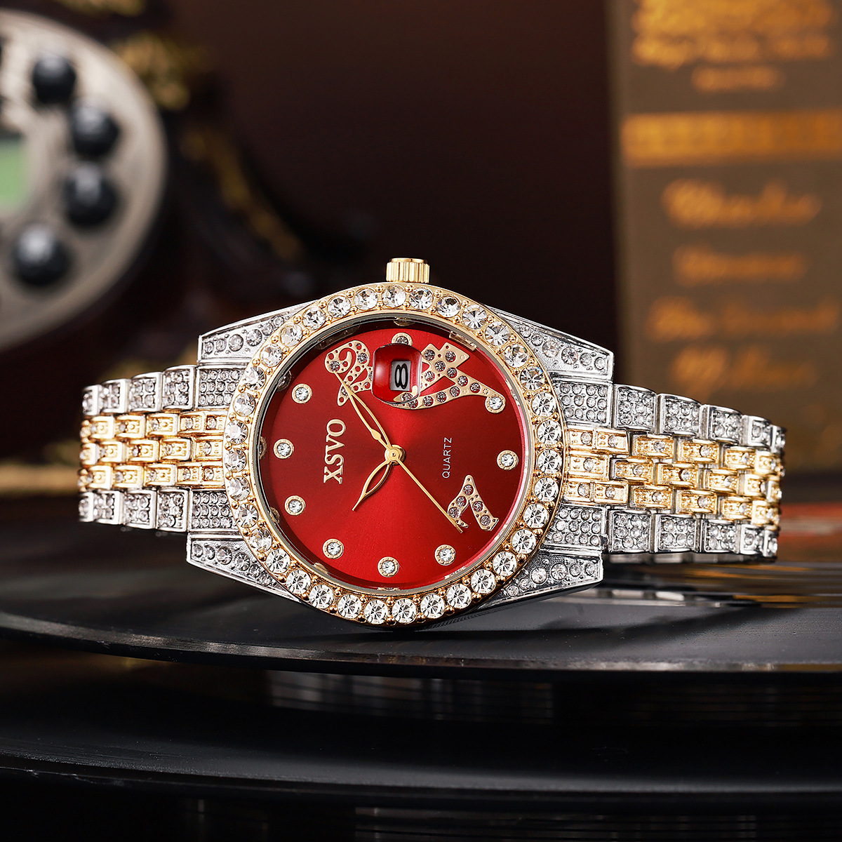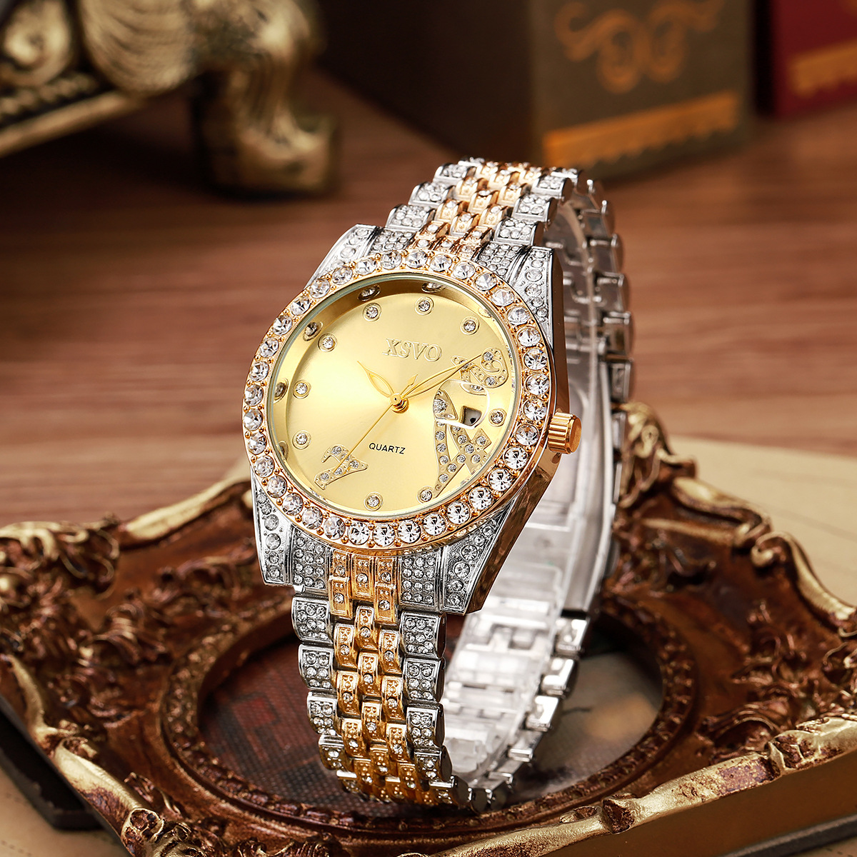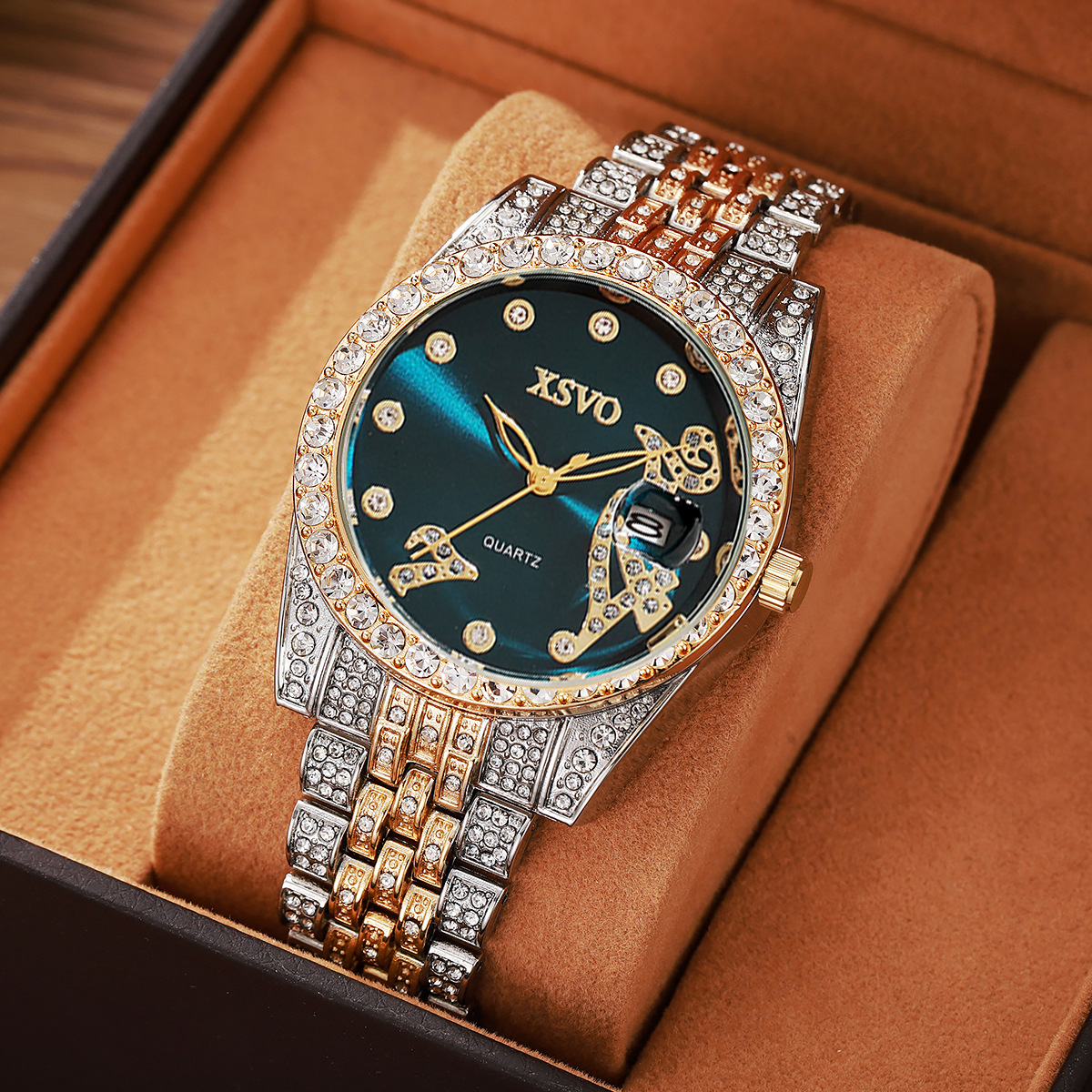 Men's Business Diamond-Set Aurora Mother-of-Pearl Dial Steel Bracelet Quartz Watch with Diamond-Set Indexes
